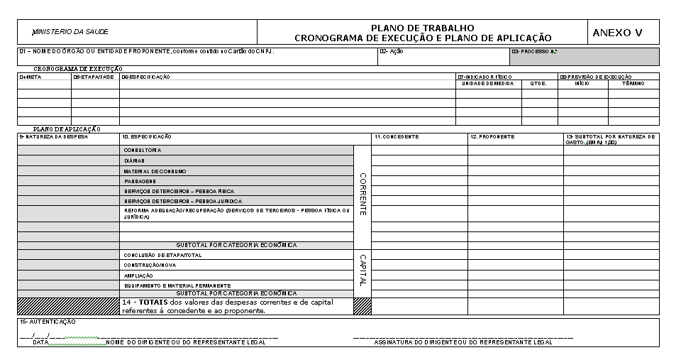 V- Plano de Trabalho - Cronograma de Execução e Plano de